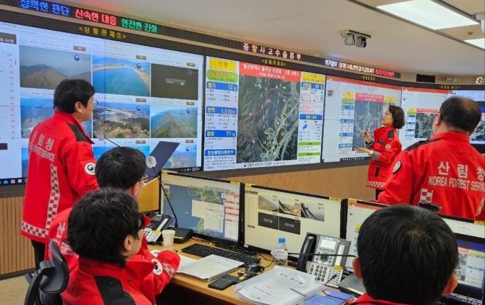 산림청 국립산림과학원은 산불 발생 시 산불확산 예측시스템 구동결과 예측도를 산불 초기 진화전략 수립과 선제적인 주민대피 등에 활용하고 있다고 25일 밝혔다.산불확산 예측도는 산불 발생지점(구역)의 기상, 지형, 연료인자를 고려하여 산불의 방향과 속도를 예측하여 위험지역