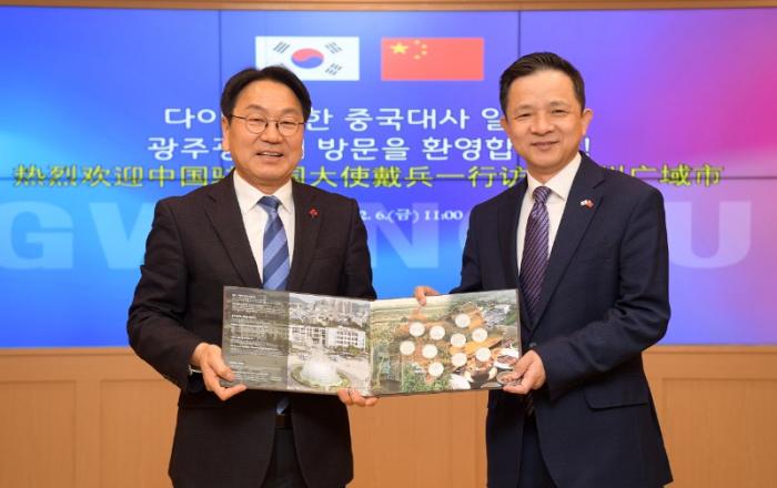 강기정 광주광역시장은 6일 시청 비즈니스룸에서 다이빙(戴兵) 주한 중국대사를 접견, 한·중 지방정부 간 교류·협력 강화 방안을 논의했다.이번 면담은 다이빙 대사가 취임 이후 처음 광주시를 방문하면서 이뤄졌다. 이날 접견에는 다이빙 주한 중국대사를 비롯해 구징치 주광주중