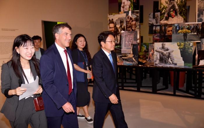 광주비엔날레를 계기로 광주시와 이스라엘이 돈독한 우호를 다졌다.강기정 광주광역시장과 아키바 토르 주한이스라엘 대사는 5일 오전 제14회 광주비엔날레 국가관인 이스라엘 파빌리온을 함께 관람하고 상호 우호증진 방안을 논의했다.강 시장과 아키바 토르 대사의 만남은 지난해