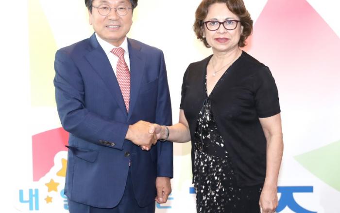 강기정 광주광역시장은 11일 시청 접견실에서 페를라 베아트리스 가르시아 크리스탈도 주한 파라과이 대리대사를 만나 도시 협력 확대 방안을 논의했다.광주시와 파라과이는 2018년부터 국제 소방안전 교류를 지속해왔으며, 이날 만남은 페를라 베아트리스 가르시아 크리스탈도 주한