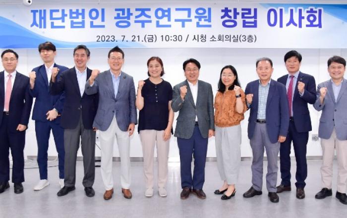 광주시는 정책연구 싱크탱크인 (재)광주연구원 창립이사회를 열고, 초대 원장 후보자를 선임하는 등 광주연구원 공식 개원 준비에 박차를 가하고 있다.광주광역시(시장 강기정)는 21일 오전 시청 소회의실에서 창립이사회를 열어 초대 원장 후보자 선정과 임원 선임, 연구원 설립