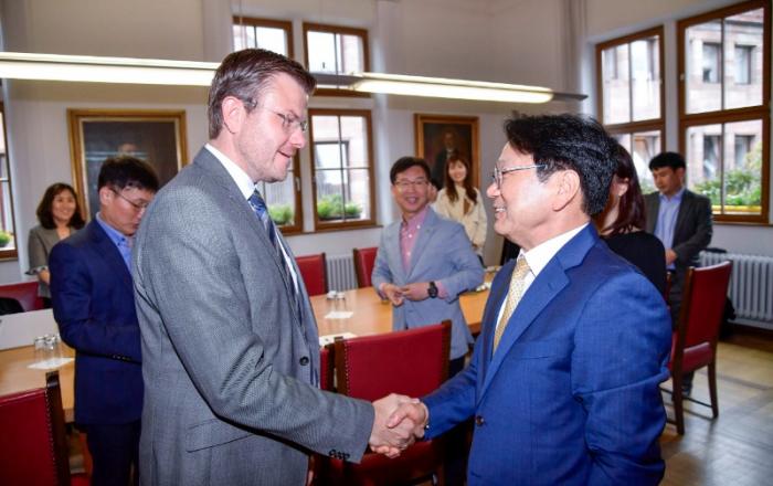 강기정 광주광역시장은 25일(현지시간) 마르쿠스 쾨니히 독일 뉘른베르크시장을 만나 인권도시 활성화 방안을 논의했다. 강 시장은 특히 이 자리에서 올해 10월 광주에서 열리는 ‘제13회 세계인권도시포럼’에 쾨니히 시장을 공식 초청했다.강 시장과 광주시대표단은 이날 오전