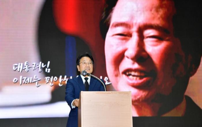 ▲ 강기정 광주광역시장이 18일 오후 동구 전일빌딩 245에서 열린 '김대중 전 대통령 서거 14주기 추도식'에 참석해 추모사를 하고 있다./광주광역시 제공강기정 광주광역시장은 18일 김대중 대통령 서거 14주기를 맞아 “당신을 닮은 ‘우정의 정치’로 광주를 키워가겠다
