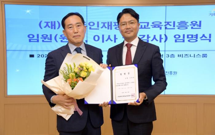 (재)광주인재평생교육진흥원 신임 원장으로 이춘문 한국열린사이버대학교 특임교수가 임명됐다.김광진 (재)광주인재평생교육진흥원 이사장(광주광역시 문화경제부시장)은 21일 시청 비즈니스룸에서 이춘문 신임 원장에게 임명장을 수여했다.이날 임명된 임원은 이 신임 원장을 비롯해 박