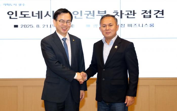 ‘민주·인권·평화의 도시’ 광주가 5·18민주화운동의 경험과 가치를 바탕으로 인도네시아와 인권 분야 협력을 강화한다. 광주광역시(시장 강기정)는 21일 시청 비즈니스룸에서 고광완 행정부시장이 무기얀토 시핀(Mugiyanto Sipin) 인도네시아 인권부 차관을 접견하고