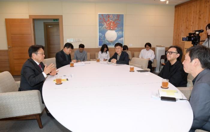 강기정 광주광역시장이 25일 시청 접견실에서 제16회 광주비엔날레 예술감독인 호 추 니엔(Ho Tzu Nyen) 감독을 만나 내년 9월 열리는 비엔날레 기획 방향과 성공 개최 방안에 대해 논의했다.이번 만남은 2026년 9월 개최 예정인 제16회 광주비엔날레의 본격적인