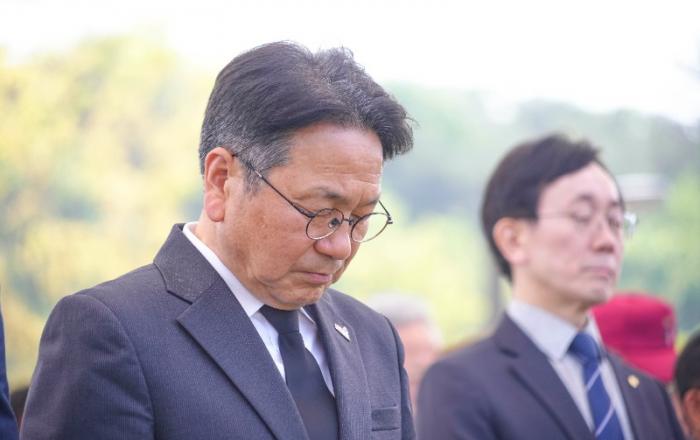 강기정 광주광역시장이 23일 경남 김해 봉하마을에서 열린 고(故) 노무현 전 대통령의 서거 16주기 추도식에 참석해 고인을 추모했다. 강기정 광주시장은 2009년 고 노무현 대통령 서거 후 거의 매년 봉하마을을 찾아 노무현 전 대통령이 꿈꿨던 ‘사람사는세상’에 대한 뜻