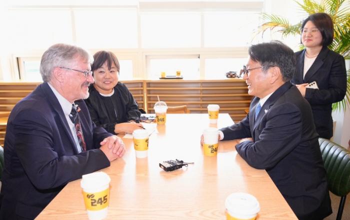 강기정 광주광역시장은 5·18민주화운동 45주년을 맞은 18일 광주 명예시민이자 5·18시민군인 ‘데이비드 돌린저’(David Lee Dolinger, 한국명 임대운)를 만나 “80년 5월 고립무원의 광주를 함께 지켜줘 감사하다”고 말했다.강 시장은 이날 전일빌딩245