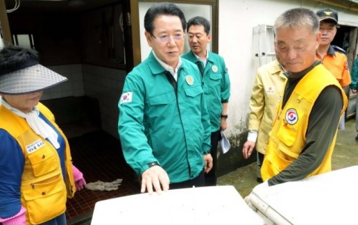 김영록 전라남도지사는 17일 광양 시설하우스 침수 피해지와 진도 주택 피해 현장을 잇따라 방문해 상황을 살핀 뒤 도민을 위로하고, 호우 대비 농배수로 신속 정비 등을 지시했다.전남도에 따르면 지난 15~16일 평균 64.0mm의 비가 내렸다. 지역에 따라 광양 중동