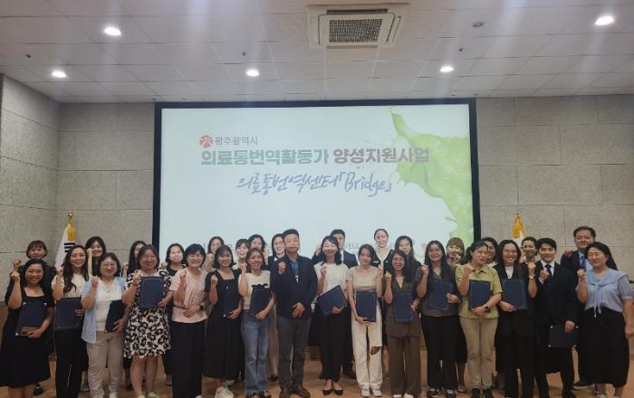 광주시가 외국인주민들을 위한 의료 통역서비스 활동가 11개 언어권 29명을 배출했다.광주광역시(시장 강기정)는 27일 시청 무등홀에서 ‘의료 통역 활동가 양성과정 수료식’을 개최했다.이 사업은 언어 장벽으로 인해 아파도 병원에 가지 못하는 외국인주민을 위해 의료 통역가