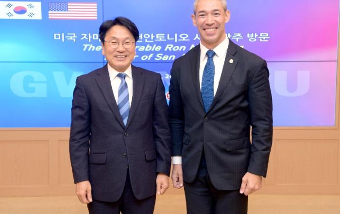 강기정 광주광역시장은 26일 시청 비즈니스룸에서 자매도시인 미국 샌안토니오시 론 니렌버그 시장을 만나 경제·문화 협력 강화방안을 논의했다.특히 지속가능한 방식의 주거, 대중교통, 교육 등 도시혁신 정책에 대해 의견을 나누고, 두 도시가 꿈꾸는 미래로 나아가기 위해 우호