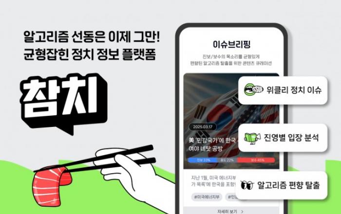 정치 정보의 편향성과 양극화가 심화되는 가운데 이를 해소하기 위한 신선한 시도가 IT 업계에 등장했다. 디엘토는 균형 잡힌 정보를 제공하는 정치 플랫폼 ‘참치’의 베타 서비스를 시작했다고 3일 밝혔다.정치 정보 큐레이션부터 국회의원 활동 추적까지… MZ세대 정치 참여