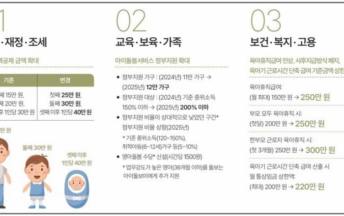 기획재정부는 2025년 달라지는 제도와 법규사항 등을 알기 쉽게 정리한 '2025년부터 이렇게 달라집니다'를 발간했다. 이 책에는 39개 정부기관(부·처·청·위원회)이 취합한 정책 313건이 분야·시기·기관별로 구성돼 있다. 육아휴직급여 인상, 기업 출산 지원금에 대한