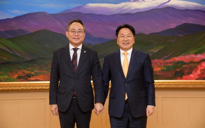 강기정 광주광역시장은 6일 시청 비즈니스룸에서 고기동 행정안전부 장관 직무대행을 만나 민생안정 및 지역 현안에 대한 적극 지원을 요청했다.이날 접견은 민생안정 등 중앙-지방 간 협력방안을 논의하기 위해 고 직무대행이 광주시를 방문해 이뤄졌다.강 시장과 고 직무대행은 ‘