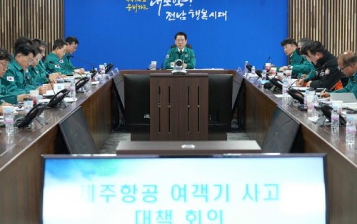 김영록 전라남도지사는 6일 오전 도청 재난종합상황실에서 제주항공 여객기 사고 대책회의를 열어 “유가족과 계속 소통해 정보를 공유하고, 백서를 기록하는 등 사고 수습 후속조치에 최선을 다할 것”을 지시했다.전남도에 따르면 이번 사고로 숨진 179명의 희생자 시신 가족 인