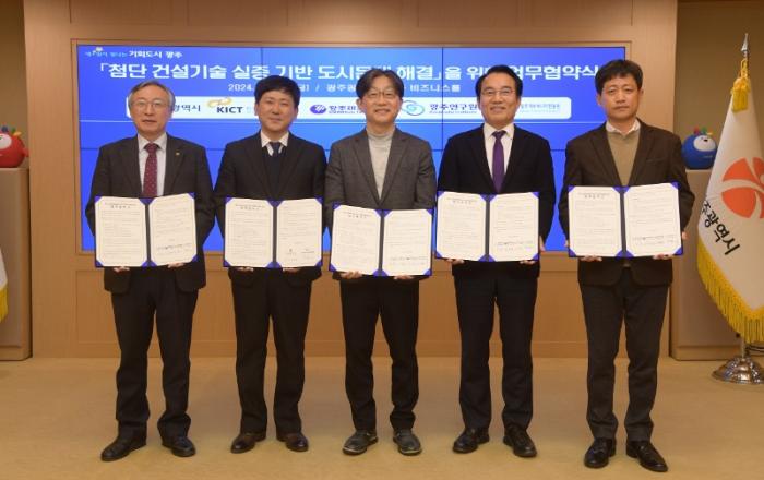 광주시가 국책연구기관인 한국건설기술연구원과 손을 맞잡고 첨단 건설기술 실증을 통한 ‘대·자·보(대중교통, 자전거, 보행 중심) 도시 광주’ 실현에 나선다.광주광역시(시장 강기정)는 13일 시청 비즈니스룸에서 한국건설기술연구원과 ‘첨단 건설기술 실증 기반 도시문제 해결을