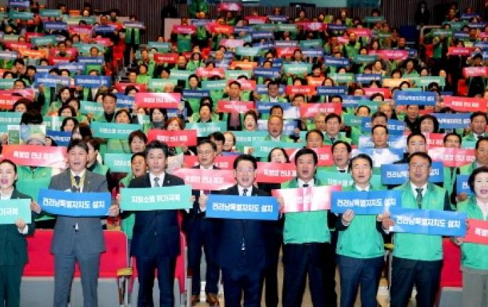 전라남도는 26일 도청 김대중강당에서 전남도 새마을지도자대회가 열려 2025년 정책 방향을 공유하고, 전라남특별자치도 설치 응원 등 지역 발전에 더욱 헌신할 것을 다짐했다고 밝혔다.(사)전남새마을회 주최로 개최한 이번 행사에는 김영록 전남도지사, 양재원 전남새마을회장,