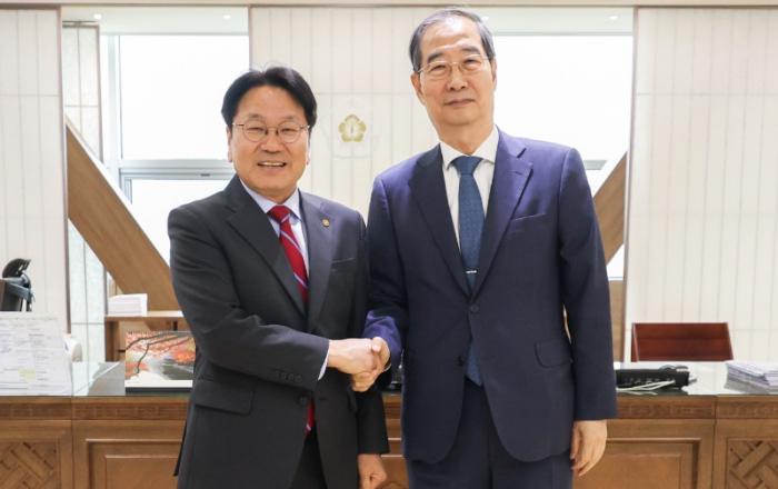 강기정 광주광역시장은 21일 정부 세종청사에서 한덕수 국무총리와 만나 민·군공항 통합이전을 위해 범정부협의체 재개를 요청했다. 민·군공항 통합이전을 위해 꾸려진 국무조정실 주관 ‘광주 군공항 이전 범정부협의체’는 지난 2021년 5월 이후 중단된 상황이다. 이번 면담은
