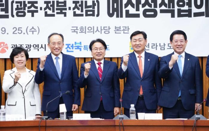광주광역시와 국민의힘은 25일 오후 국회에서 ‘2024년 호남권 예산정책협의회’를 갖고, 지역현안 해결과 내년도 국비 확보에 힘을 모으기로 했다.이날 회의는 국민의힘이 전국 광역자치단체를 대상으로 순회 실시하는 권역별 예산정책협의회로, 광주시·전남도·전북도 등 호남권