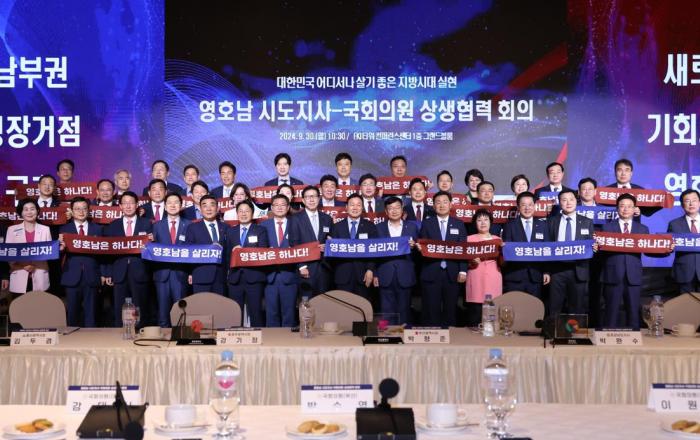 영호남 시도지사 협력회의 의장인 박완수 경남도지사는 30일 서울 FKI(한국경제인협회)타워 컨퍼런스센터에서 영호남 지역구 국회의원들을 초청해 “영호남 협력은 선택이 아닌 생존의 문제”라며 영호남 발전에 원팀이 되어 줄 것을 요청했다.이번 회의는 영호남 시도지사협력회의