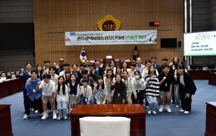 광주광역시(시장 강기정)는 5일 광주시의회 본회의장에서 제8대 청소년의회와 제4대 아동의회를 동시 개최했다. 이날 열린 청소년의회 본회의에는 청소년의원, 아동의회에는 아동의원 등 30명이 참석했다. 또 광주시의회 명진 의원을 비롯해 광주시와 교육청, 아동·청소년단체 관