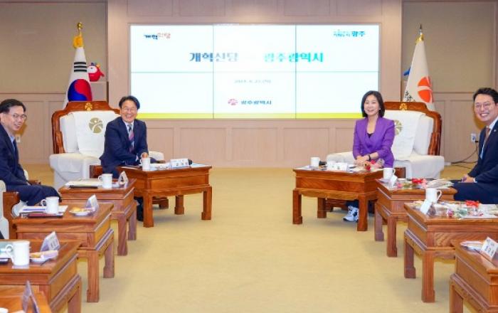 강기정 광주광역시장은 22일 오전 시청 비즈니스룸에서 개혁신당 지도부와 만나 지역 현안 해결을 위해 적극 협력하기로 했다.이 자리에는 개혁신당 허은아 대표를 비롯해 천하람 원내대표, 이기인‧조대원‧전성균 최고위원, 김철근 사무총장 등 당 지도부가 총출동했다. 광주시는