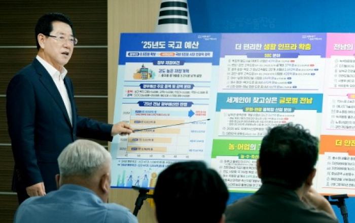 전라남도가 27일 국무회의를 거쳐 발표된 2025년 정부 예산안에 국비 8조 8천928억 원을 확보, 2년 연속 9조시대 달성 계기를 마련했다. 이는 2024년 정부예산안(8조 6천21억)보다 2천907억(3.4%) 늘어난 규모다.정부의 강력한 긴축재정 기조에 따라