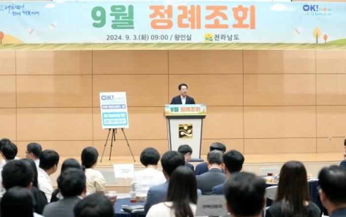 김영록 전라남도지사는 3일 “전남특별자치도는 현실적으로 독일 연방제 수준의 자방자치 권한 이양이 어려운 만큼 일정부분 특별한 권한을 받아 지방소멸 위기를 극복하기 위한 것으로 많은 공감을 받고 있다”고 밝혔다.김영록 지사는 이날 오전 도청 왕인실에서 9월 정례조회를