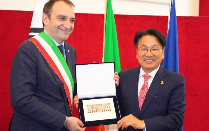 광주광역시와 토리노시는 한국-이탈리아 수교 140주년을 맞아 ‘우호협력 협정’을 체결, 경제‧스포츠 분야로 교류협력을 확대하는 등 상호발전과 우애를 더욱 강화하기로 했다.강기정 광주광역시장과 스테파노 로 루쏘 토리노시장은 15일(현지시간) 이탈리아 토리노시청에서 ‘광주