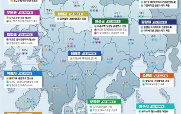 전라남도는 올해를 세계적 관광명소 기반 조성을 위한 ‘남부권 광역관광 개발사업’ 원년의 해로 정하고, 앞으로 10년간 1조 3천억 원을 들여 지속가능하고 경쟁력을 갖춘 지방시대 관광 기반을 조성한다고 밝혔다.남부권 광역관광 개발사업은 글로벌 관광도시 전남으로 대도약하는