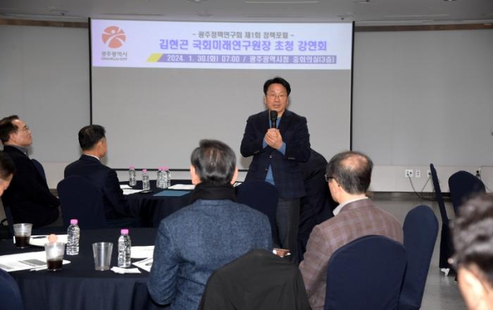 광주발전과 시민행복을 공동 목표로 한 광주지역 전문가들이 머리를 맞댔다.광주광역시(시장 강기정)는 30일 시청 중회의실에서 ‘미래전망과 지역대응 방안’을 주제로 제1회 정책포럼을 개최했다.올해 처음 열린 정책포럼은 광주의 중장기 미래 비전을 논의하고 기관별 정책 연구