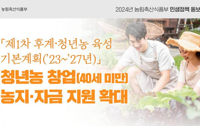 농림축산식품부가 청년들이 영농 창업 과정에서 지원 확대 요구가 가장 큰 농지와 자금 등의 지원을 올해 한층 더 확대한다고 16일 밝혔다. 이에 창업 초기 청년농업인에게 정착지원금을 지급하는 영농정착지원사업 선정인원을 지난해 4000명보다 1000명 많은 5000명