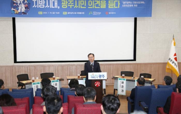 광주광역시(시장 강기정)는 대통령직속 지방시대위원회와 함께 19일 오후 3시 시청 무등홀에서 광주시 지방시대위원, 자치구 관계자 등 100여명이 참석한 가운데 ‘지방시대, 광주시민 의견을 듣다’를 개최했다.이날 행사는 지난해 수립된 ‘제1차 지방시대 종합계획(2023~