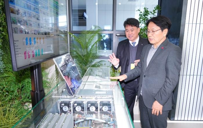 ▲ 강기정 광주광역시장이 10일 오후 북구 국가인공지능(AI)데이터센터에서 열린 정책소풍에 참석해 센터 홍보관을 살펴보고 있다./광주광역시 제공강기정 광주광역시장이 새해 첫 정책소풍 현장으로 광주 북구에 위치한 국가인공지능(AI)데이터센터를 찾아 인공지능(AI) 정책