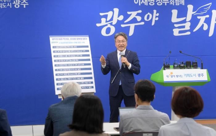 강기정 광주광역시장이 이재명 대통령에게 인공지능(AI) 산업과 군사시설 이전 등 ‘2+4 주요 현안’을 건의했다. ‘2+4 주요 현안’은 인공지능(AI) 2단계 사업 예비타당성조사 면제, 국가인공지능(AI)컴퓨팅센터 신속 공모 등 인공지능(AI)산업 주요 현안 2개와