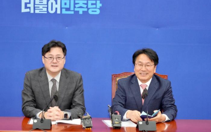 ▲ 강기정 광주광역시장은 10일 국회에서 홍익표 더불어민주당 원내대표와 서삼석 국회 예결위원장 등을 만나 내년도 주요 현안사업에 대한 국비 지원을 건의했다./광주광역시 제공강기정 광주광역시장이 심각한 재정가뭄 상황을 조금이나마 타개하고자 국회를 방문, 국비 확보 활동에
