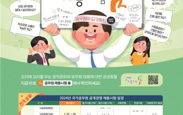 공무원 채용에 관한 모든 정보가 다 모였다. 인사혁신처는 수험생이 궁금해하는 공직의 모든 정보를 편리하게 볼 수 있는 채용 전문 온라인 공간 ‘공무원 채용시험 봄’을 공식 개설했다고 15일 밝혔다. ‘공무원 채용시험 봄’은 현재 공무원 시험 일정 등의 정보를 제공해 수