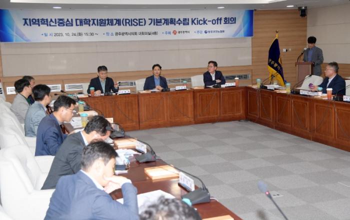 광주시가 지역혁신중심 대학지원체계(RISE) 기본계획 수립을 위한 본격적인 준비에 들어갔다.광주광역시(시장 강기정)와 (재)광주테크노파크는 24일 광주시의회 대회의실에서 라이즈(RISE) 기본계획 수립을 위한 지역대학 실무협의체 첫 기획회의(킥오프)를 개최했다.라이즈(