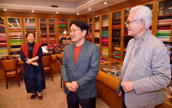 ▲ 강기정 광주광역시장이 25일 오후 동구 충장22 갤러리에서 열린 정책소풍 참석에 앞서 충장로 4, 5가 장인들이 운영하는 점포를 방문해 의견을 청취하고 있다./광주광역시 제공강기정 광주광역시장은 25일 충장로 4·5가를 찾아 상인들과 골목상권 활성화에 대해 논의했다