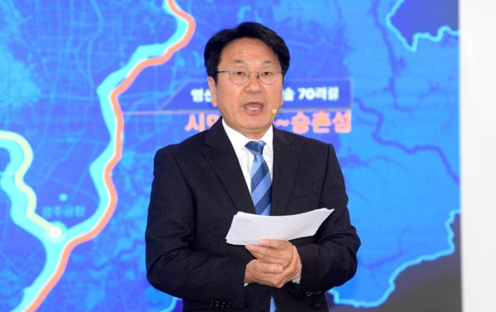 민선8기 광주시 핵심공약 사업인 ‘영산강 100리길, Y프로젝트’의 밑그림이 나왔다.강기정 광주광역시장은 26일 시청 소회의실에서 새로운 영산강 시대의 그랜드플랜 ‘영산강 100리길, Y프로젝트’를 발표했다.그동안 광주는 무등산과 광주천 중심으로 원도심 발전에 주력했다