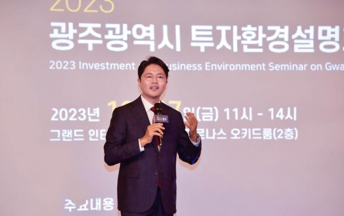 광주시가 국내외 유망기업이 참여한 가운데 서울에서 투자환경설명회를 여는 등 적극적인 투자유치에 나섰다.광주광역시(시장 강기정)는 27일 서울 그랜드인터컨티넨탈호텔에서 국내외 100여개 투자자들을 대상으로 광주 투자환경과 신산업 육성 및 지원 정책 등을 소개하는 투자환