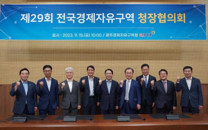 광주경제자유구역청(이하 광주경자청)은 15일 김대중컨벤션센터에서 전국 9개 경제자유구역청장과 관계자 등 40여 명이 참석한 가운데 ‘제29회 전국경제자유구역 청장협의회’를 개최했다.전국경제자유구역 청장협의회는 경제자유구역청 간 상호협력체계를 구축하고 원활한 사업 추진을
