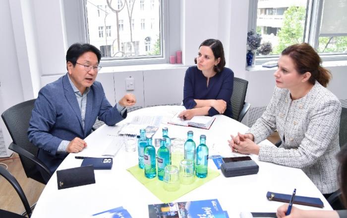 강기정 광주광역시장은 27일(현지시간) 독일 베를린에 위치한 ‘기억·책임·미래재단(EVZ)’을 방문, 독일의 강제동원된 노동자 배상 문제와 미래세대 교육을 통한 과거청산을 논의하는 등 국제협력의 물꼬를 텄다. 강 시장과 김병내 남구청장, 박병규 광산구청장 등 광주시대표