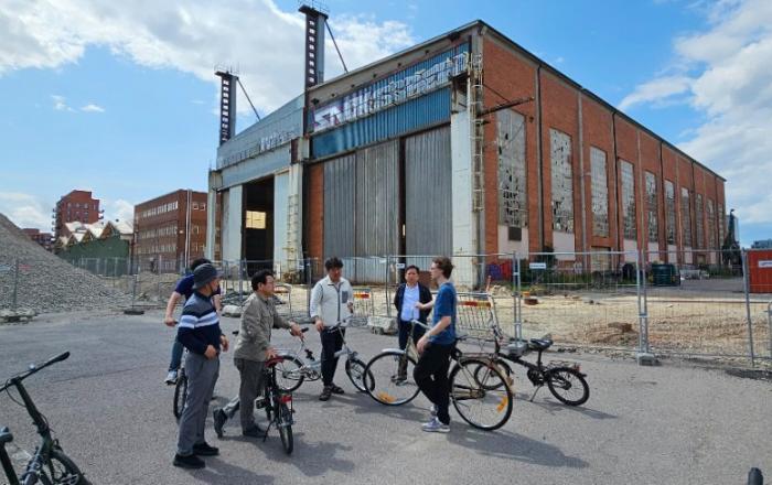 ▲ 강기정 광주광역시장과 김병내 남구청장이 30일(현지시간) 오전 스웨덴 남부항구도시 말뫼에 위치한 세계 최초의 자전거 호텔 쉬켈후세트(Cykelllhuset)를 방문해 호텔을 둘러본 뒤 무인 공유자전거 'Malmö by bike'를 체험해 보고 있다./광주광역시 제공