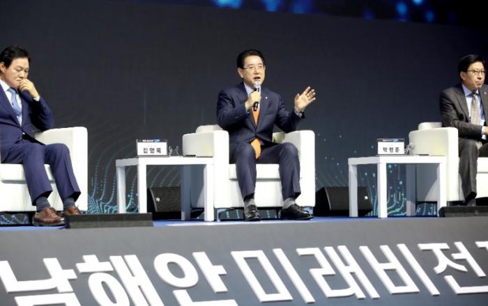 김영록 전라남도지사는 4일 오후 경남 창원컨벤션센터에서 열린 남해안 미래비전 포럼에서 전남을 중심으로 부산, 경남과 함께하는 ‘세계 속의 남해안 관광벨트 성공 비전’을 제시했다.포럼에는 김영록 지사, 박형준 부산광역시장, 박완수 경상남도지사, 최형두 국회의원, 기업,