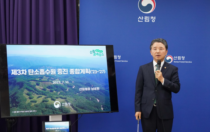 산림청은 7월 10일(월), 산림을 통한 탄소중립 실현과 녹색성장을 위해 2027년 국가 온실가스 감축량의 21%인 3,000만톤 흡수를 목표로 추진하는 ‘제3차 탄소흡수원 증진 종합계획(’23~’27)’을 발표했다. 본 종합계획은 ‘제1차 국가 탄소중립