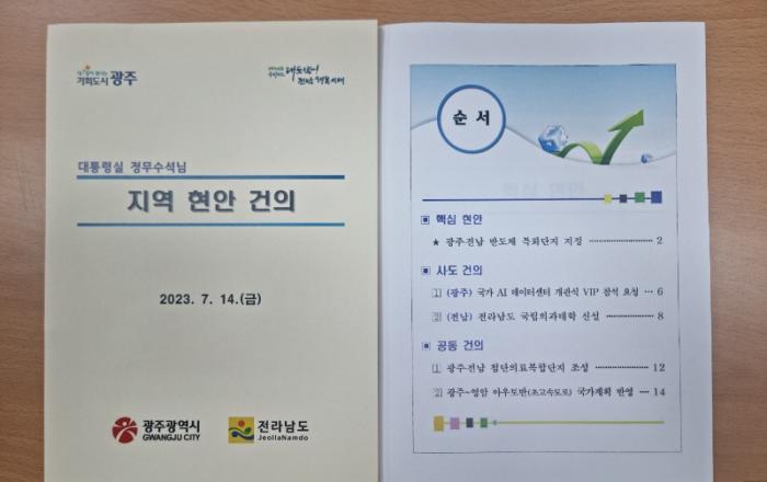 강기정 광주광역시장과 김영록 전라남도지사는 전국 유일 초광역 ‘광주‧전남 반도체 특화단지’ 유치를 위해 막바지 총력전을 펼쳤다.양 시‧도지사는 14일 용산 대통령실에서 이진복 정무수석과 면담을 갖고, 반도체 특화단지 지정을 앞두고 광주‧전남 유치 당위성을 적극 피력했다