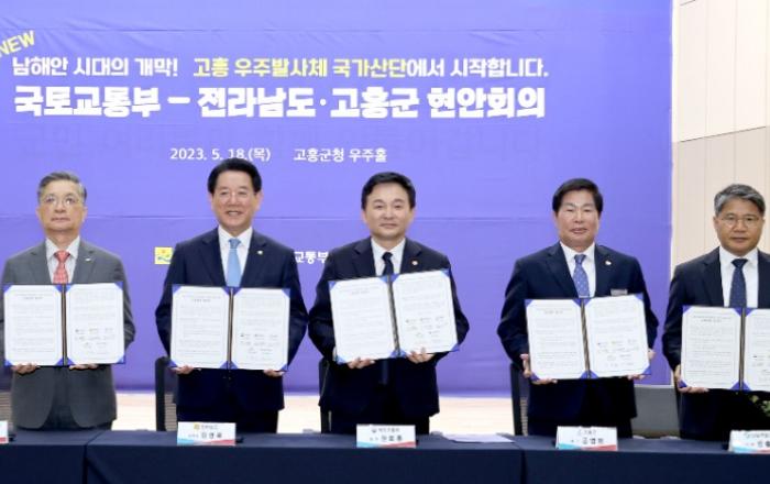18일 고흥군청에서 열린 고흥 우주발사체 국가산단의 성공을 위한 ‘국토교통부-전남도·고흥군 현안회의’에서 원희룡 국토교통부 장관이 광주~고흥 고속도로 건설 등 직접 지원을 약속했다.이에 대해 김영록 지사는 감사를 표하며, 미래첨단소재 국가산업단지 지정 등 현안과 함께