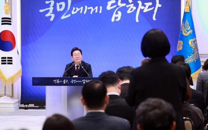 이재명 대통령은 취임 30일을 맞는 3일 오전 10시 첫 기자회견을 갖는다고 대통령실이 2일 전했다.기자회견은 유튜브 채널 '이재명TV'와 'KTV'에서 생중계된다. '대통령의 30일, 언론이 묻고 국민에게 답하다'라는 제목의 이번 기자회견은 이재명 대통령의 모두발언을