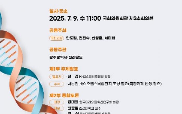 광주시와 전남도가 이재명 정부의 첨단산업 육성 및 산업 균형발전을 위한 필수과제인 ‘서남권 첨단 바이오헬스복합단지’ 조성을 위해 손을 맞잡는다.광주광역시(시장 강기정)는 9일 오전 11시 서울 여의도 국회의원회관 제2소회의실에서 ‘서남권 첨단 바이오헬스복합단지 조성전략
